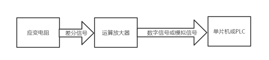 其中紅線是電源正,黑線是電源負,綠線和白線是信號輸出。這里輸出的信號是差分信號,電子稱重解決方案核心原理是將差分信號轉化為數(shù)字信號或0-20mA模擬信號,原理如下圖: