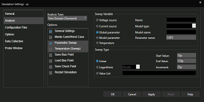 在PSpice中定義參數(shù)掃描范圍