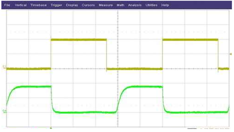 通過軟啟動(dòng)電容器C5的短路來快速打開/關(guān)閉轉(zhuǎn)換器是調(diào)節(jié)LED亮度的簡(jiǎn)便方法。圖2顯示了PWM輸入信號(hào)和實(shí)際LED電流。這種PWM調(diào)光方法效率更高,因?yàn)楫?dāng)SS引腳短路時(shí),轉(zhuǎn)換器將關(guān)閉并且消耗很少的功率。但是,該方法也相對(duì)較慢,因?yàn)檗D(zhuǎn)換器每次接通時(shí)必須以受控方式逐漸增加輸出電流,從而在輸出電流上升之前產(chǎn)生非線性的有限死區(qū)時(shí)間。。同時(shí),這也將接通時(shí)間的最小負(fù)載周期降低到10-20%。在不需要高速和100PWM調(diào)節(jié)的某些LED應(yīng)用中,這種方法可能就足夠了。